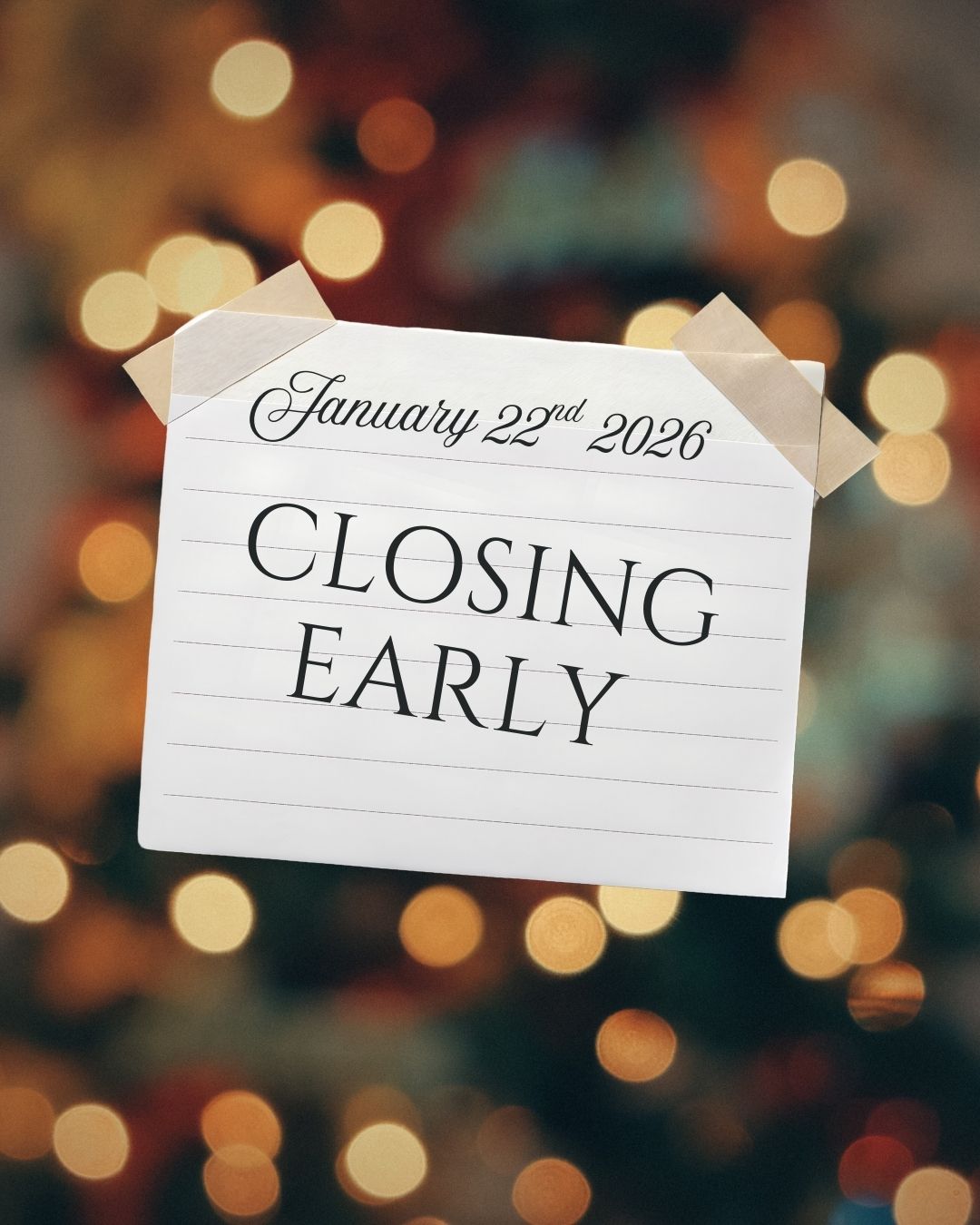 We will return to our regular business hours on Friday January 23rd 2026.