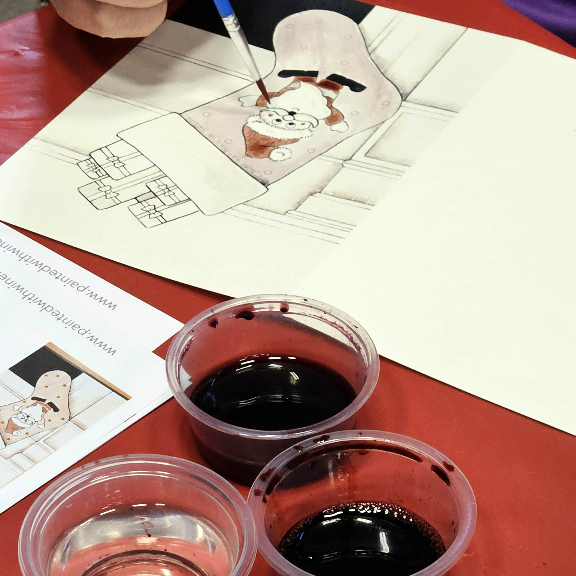 - All painting supplies provided including 8 holiday cards (pre-stencilled, 2 of each of 4 unique designs)
